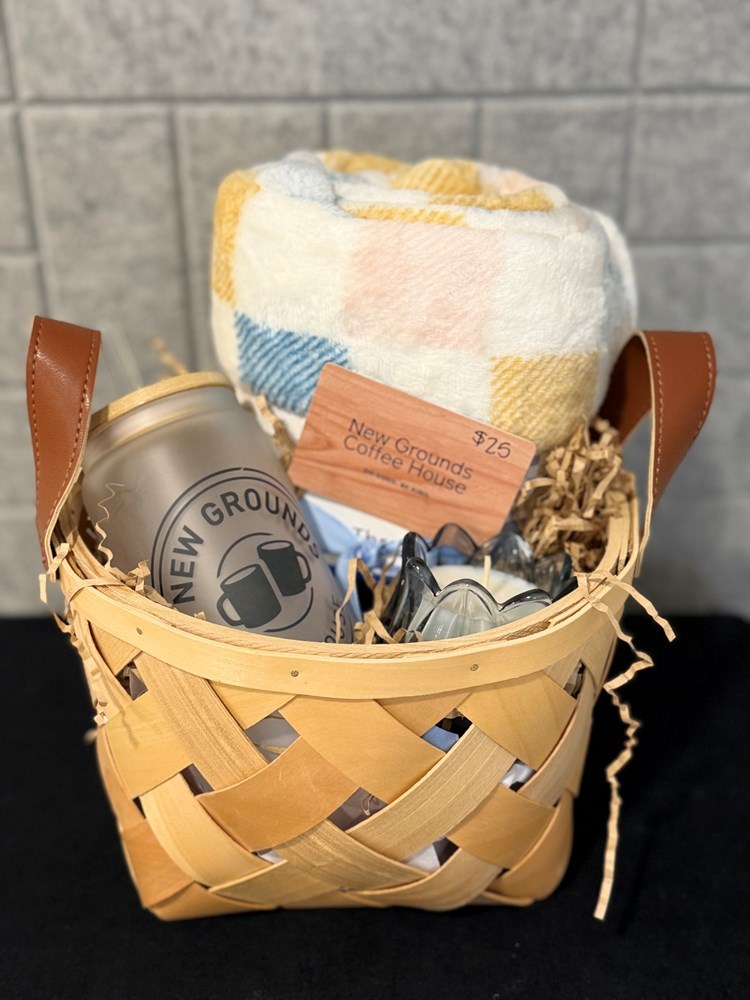 Warm up and wind down with this perfect pairing of comfort and caffeine! This basket includes a $25 gift card to New Grounds Coffee House — your go-to spot for handcrafted drinks and cozy vibes. Snuggle up with a soft blanket and light a beautifully scented candle to create the ultimate relaxing atmosphere at home. On the go? Your stylish iced coffee travel cup keeps your favorite brew perfectly chilled wherever the day takes you. Whether you’re enjoying a quiet morning or fueling a busy afternoon, this bundle blends comfort, convenience, and community charm in every sip.